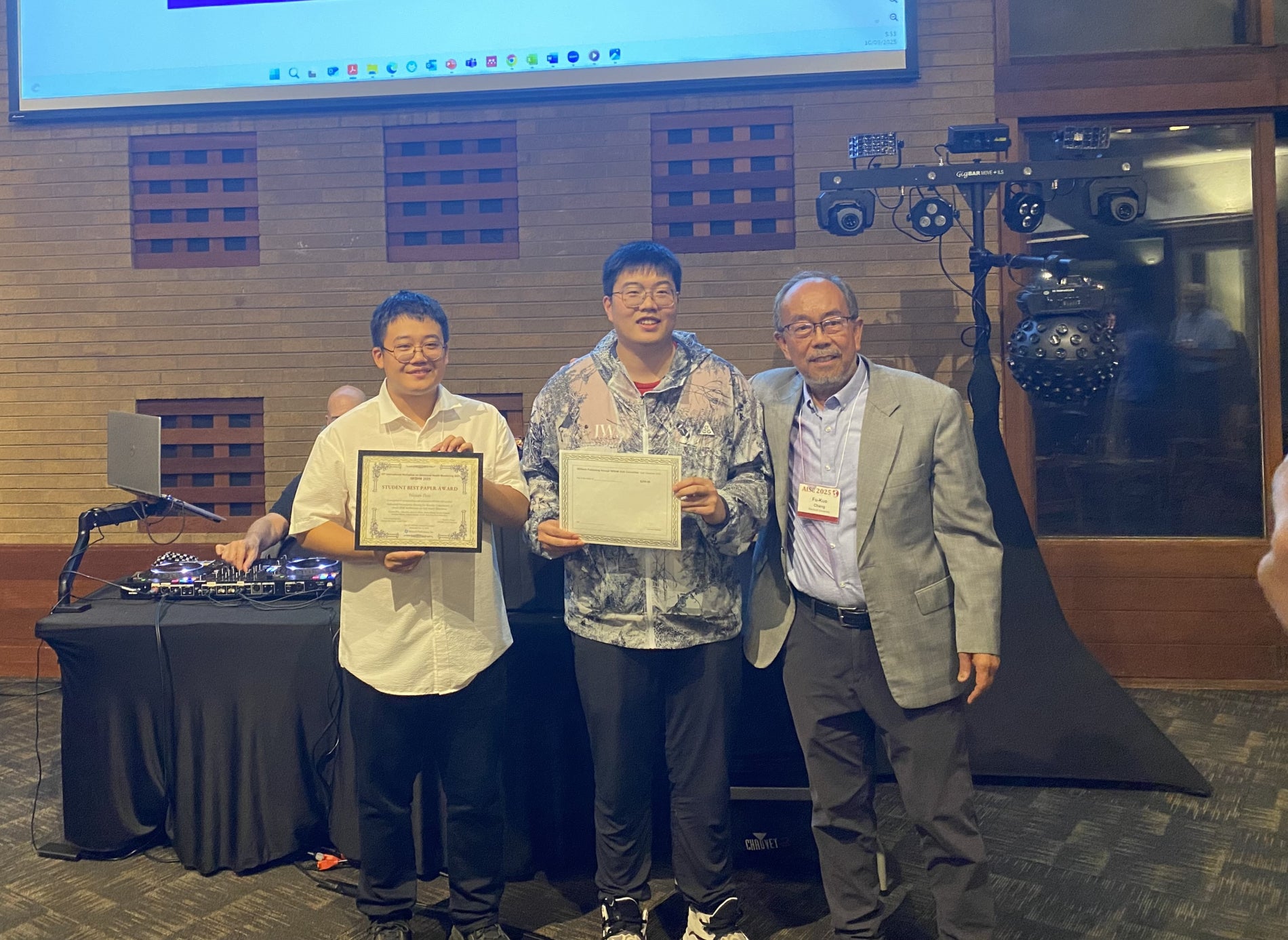At the International Workshop on Structural Health Monitoring (IWSHM) 2025, Peiyuan Zhou and co-authors Jinhan Ren, James Schure, Shinan Huang, Sazedur Rahman, as well as Professors S. Mishra, J. Samuel, S. Akin and F. Kopsaftopoulosreceived the Best Student PaperAward for their paper titled “Embedded Piezoelectric Sensing for Metallic Components: A Novel SHM Architecture for Self-Aware Structures”. The work presented novel results on a hybrid manufacturing framework that embeds subsurface piezoelectric sensors into Al-5356 metallic components using WAAM, machining, and cold spray, enabling self-sensing structures with real-time guided-wave and impedance-based diagnostics under mechanical and thermal loading.